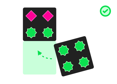 This would score 4 points (2 for the yellow circles and 2 for the green stars).