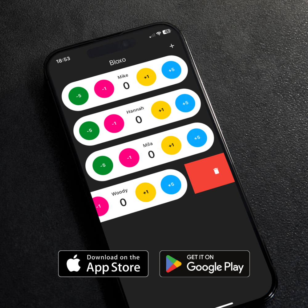 Download the Official Bloxo Scoring app to easily keep scores while playing Bloxo. Add and remove points for each player easily. Download for FREE on the App Store now.